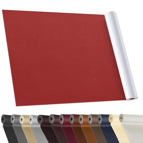 Simili Cuir Autocollant Kit de réparation de cuir auto-adhésif pour meubles Ruban de réparation de cuir pour siège de voiture, canapé, chaise, sac à main, fauteuil inclinable 53,9 pouces(Red,19.6x53.9