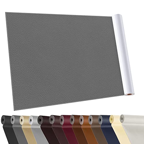 Hode 44x300cm Rouleau Autocollant Simili Cuir Gris, Simili Cuir Autocollant pour Réparation Canapé, Patch de Réparation Cuir Auto-adhésif pour Siège, Voiture, Meubles, Vestes, Sac À Main