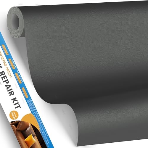 YAFLC Patch de Réparation en Cuir Gris Foncé, 40x80cm Auto-adhésif pour Rénovation, Simili Cuir Autocollant pour Canapé, Siège de Voiture, Meubles, Vestes, Sac