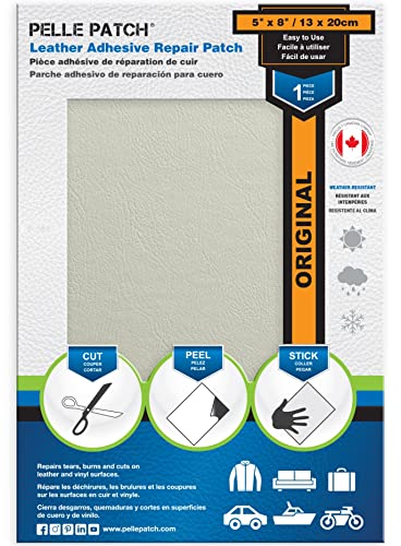 Pelle Patch - Réparateur de Cuir Auto-adhésif pour réparation de canapé découpable - 25 Couleurs Disponibles - Original 20cm x 28cm - Blanc