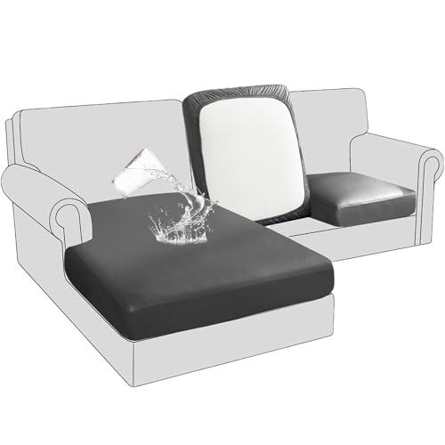 Housse de Coussin de Canapé, Housse Coussin D'assise Extensible Antidérapant Housse de siège de canapé pour canapé imperméable, Simili Cuir Housse de Coussin de Canapé (Grand 1 Place,Gris foncé)