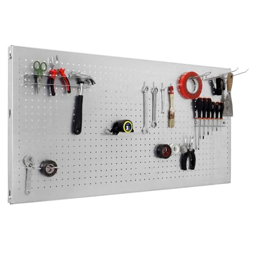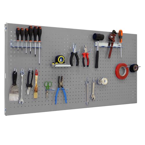 Simon Rack Panneau Mural Perforé Porte Outils, Jeu de 17 crochets, 900x400 mm, Gris - Simonwork