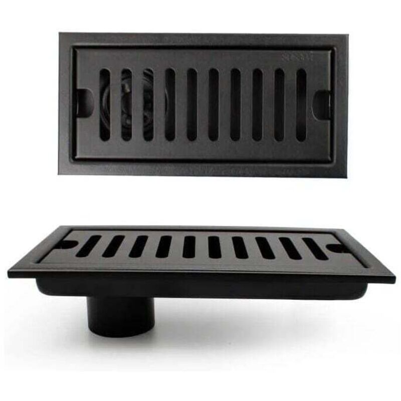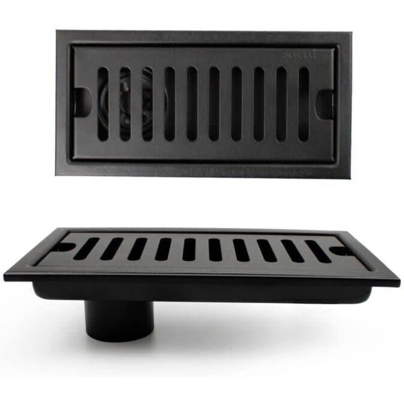 Siphon de sol rectangulaire avec piège à odeurs, siphon de douche 20 × 10 cm avec clapet anti-retour, siphon de sol vertical noir avec grille en