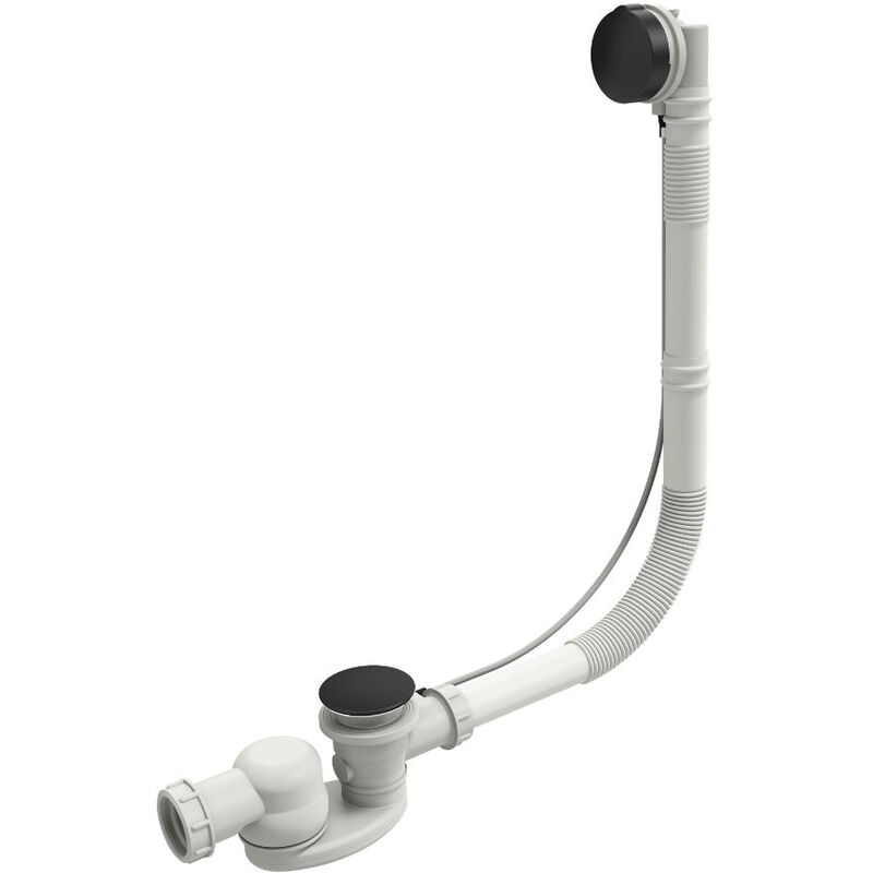 Nicoll – Vidage baignoire siphon extra-plat – Capacité d'écoulement 70 l/min – Tube de trop-plein réglable – Encombrement réduit 108 mm