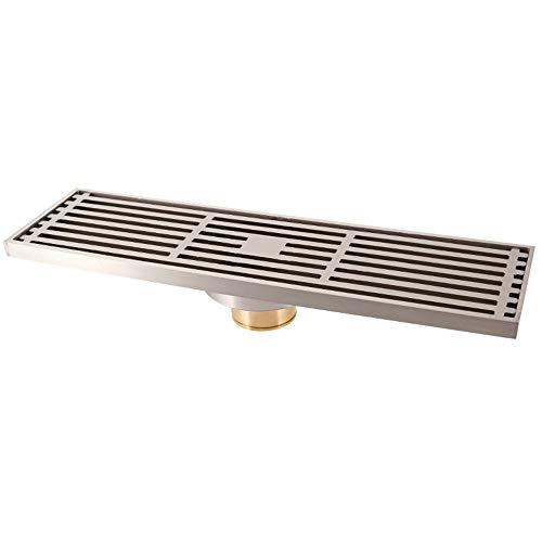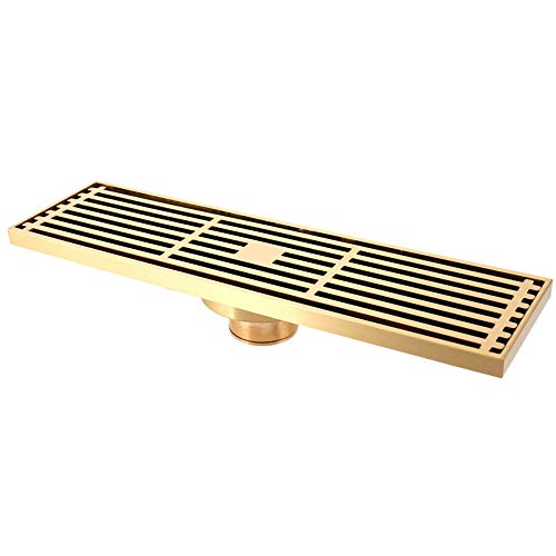SHUGUANG Caniveau de Douche en Laiton Brossé Drain de Douche avec Grande Calibre Anti Encrassement Anti Odeur Siphon de Sol pour Salle de Bain et Cuisine, 30×8 cm,d'or
