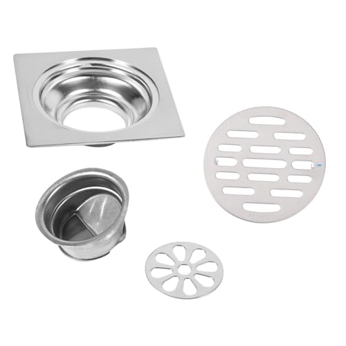 Garosa Drain De Douche Carré Acier Inoxydable avec Amovible Ronde Couverture De Modèle Rotatif Plancher Siphon De Sol Anti-Odeur Salle De Bain Large Calibre Attraper Cheveux(Common Floor Drain)