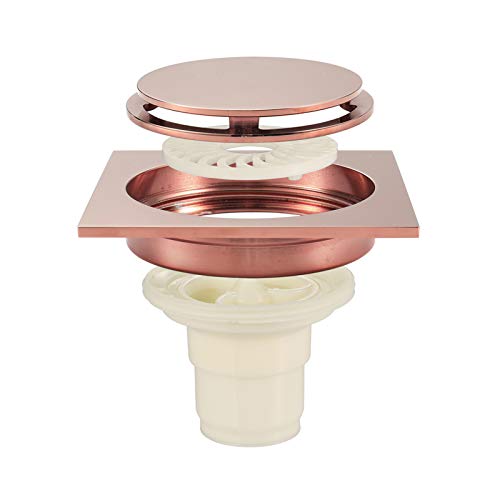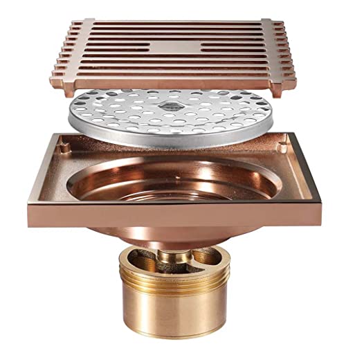 Siphon de Sol 4 Pouces Drain de Plancher Laiton Caniveau de Douche Anti-Odeur Carrée Drain de Douche pour WC Salle de Bain,Rose Gold
