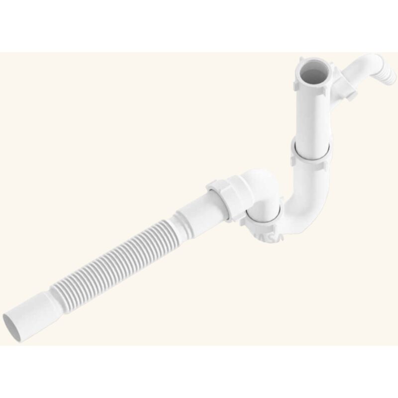 SOMATHERM FOR YOU, Siphon évier réglable en plastique blanc avec prise pour machine à laver, hauteur ajustable de 175 à 250 mm, arrivée et sortie écrou 40/49, joint américain