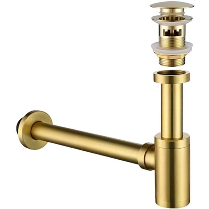 Bonde de vidange en acier inoxydable avec trop-plein pour salle de bain, siphon pour évier de cuisine et de salle de bain, finition or brossé