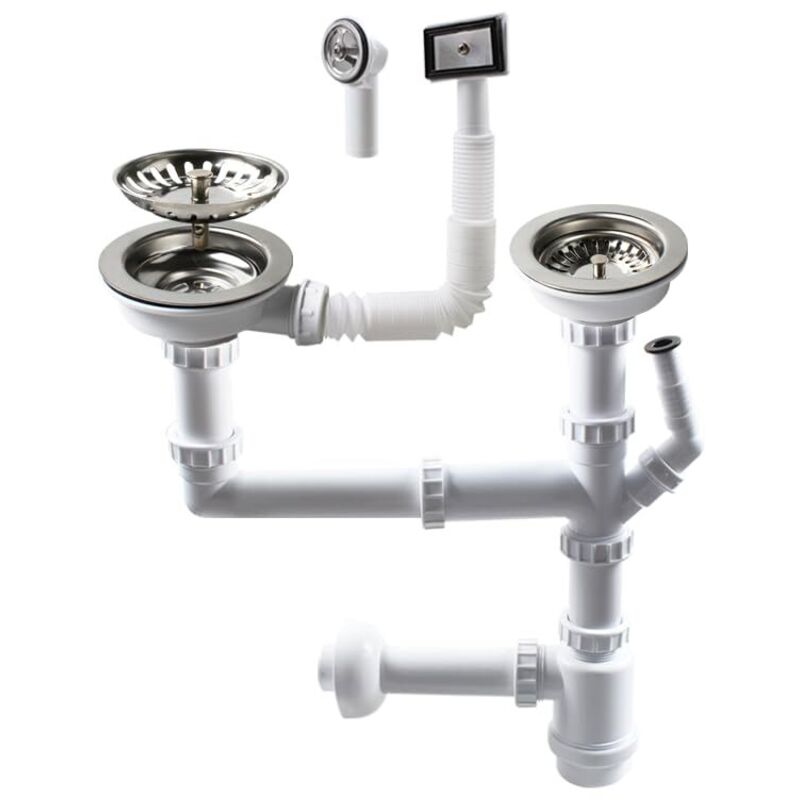 NICOLL Vidage complet Ø70 avec siphon évier inox 2 cuves