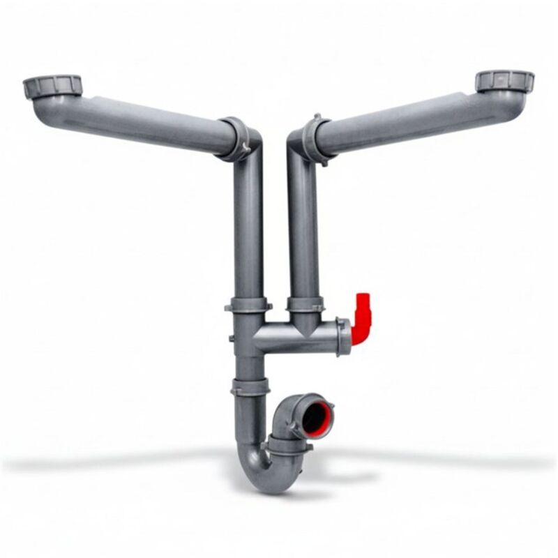 Siphon évier tubulure gain de place pour éviers à 2 cuves – Évacuation 1' 1/2 – Hauteur 285 mm – Compatible machine à laver – Lira
