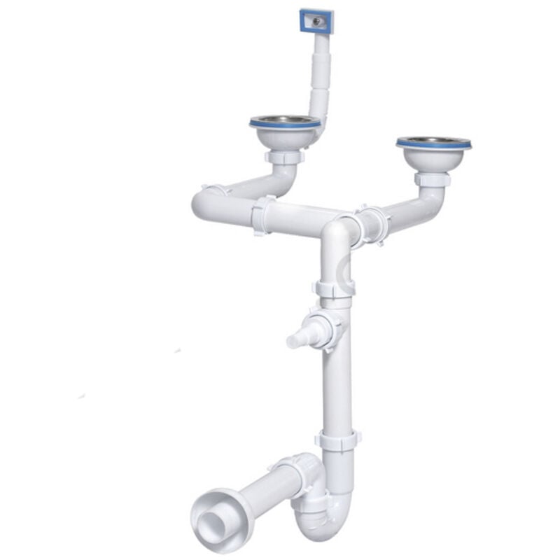 Acquastilla 112378 Siphon pour évier deux voies sans bonde