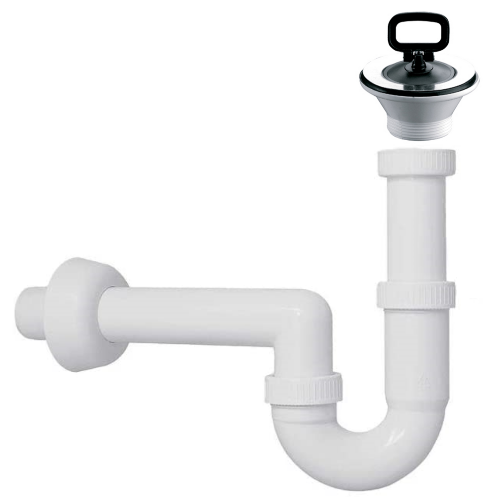 Maryplast Siphon en PVC pour évier à 1 cuve avec évacuation pour lave-vaisselle encombrement minimum
