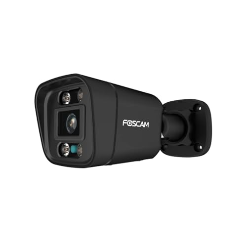 Foscam V5EP 5MP POE Caméra de Surveillance avec Phare Intégré et Sirène d'Alarme, Détection de Personnes et Véhicules, Vision Nocturne, Audio Bidirectionnel, Fonction P2P, IP66 Waterproof (Noir)