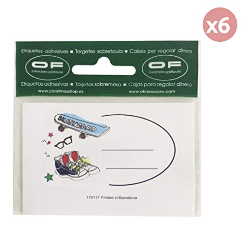 O.F. Blister de 6 étiquettes adhésives Skate-Chaussure 9 x 6 cm Multicolore (170117