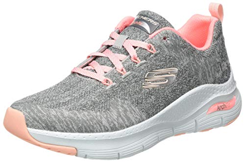 Skechers Femme Arch Fit Comfy Wave Baskets, Gray Knit/Pink Trim, 35.5 EU