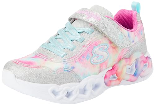 Skechers Fille Infinite Heart Lights Color Lovin, Silver Sparkle Mesh Multi Trim, 34 EU