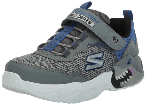 Skechers Garçon Meteor-Lights-krendo Baskets, Charcoal Synthetic Textile Blue Trim, 28 EU
