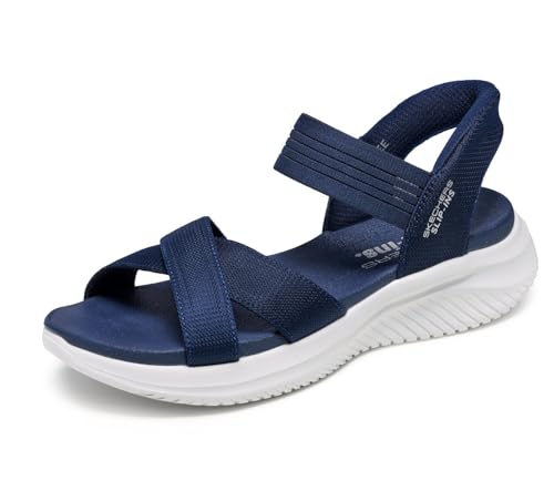 Skechers Femme Ultra Flex 3.0-Sun Warmth Hands Free Slip-ins Sandale, Bleu Marine, 41 EU