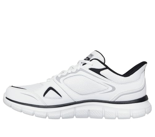 Skechers Track Ezral Slip-ins Baskets Confortables en Mousse à mémoire de Forme pour Homme, Cuir Blanc Maille PU Noir, 46 EU