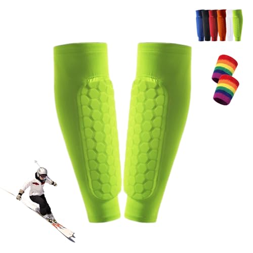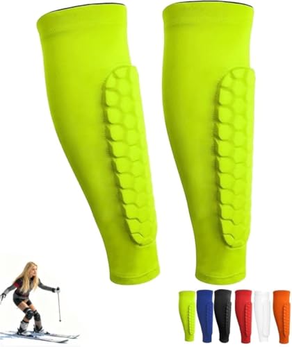 Protege Tibia Ski, Protection Tibia Ski, Protege Tibia Foot Adulte, Protège-Tibias élastiques Respirants Et Anti-Collision, Structure en Nid d'abeille, pour Le Skier/Football (Vert, L)
