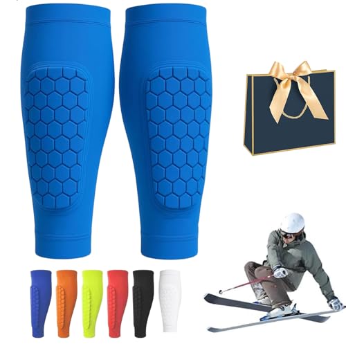 Protege Tibia Ski, Protection Tibia Ski, 1 Paire Shin Defender Shin Guards, Ski Sports Elastic Shin Bang Protetcor with Honeycomb Pads, Équipement de Protection Ski, Sport for Kids and Aldult