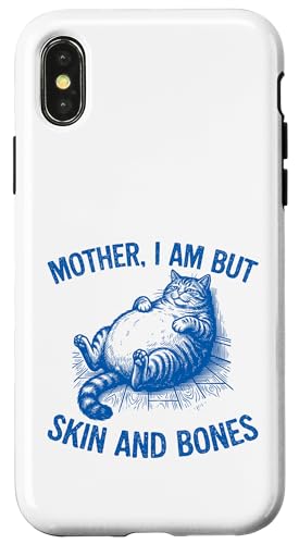Maman I Am But Skin and Bones Humour Funny Fat Cat Lover Humour Coque pour iPhone X/XS