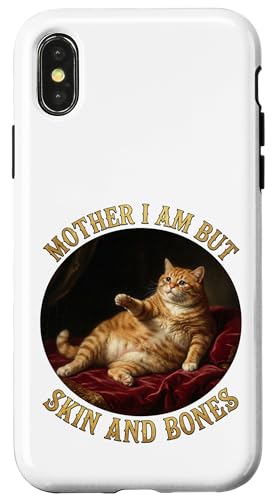 Maman I Am But Skin and Bones Humour Funny Fat Cat Lover Humour Coque pour iPhone XR