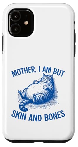 Maman I Am But Skin and Bones Humour Funny Fat Cat Lover Humour Coque pour iPhone 11