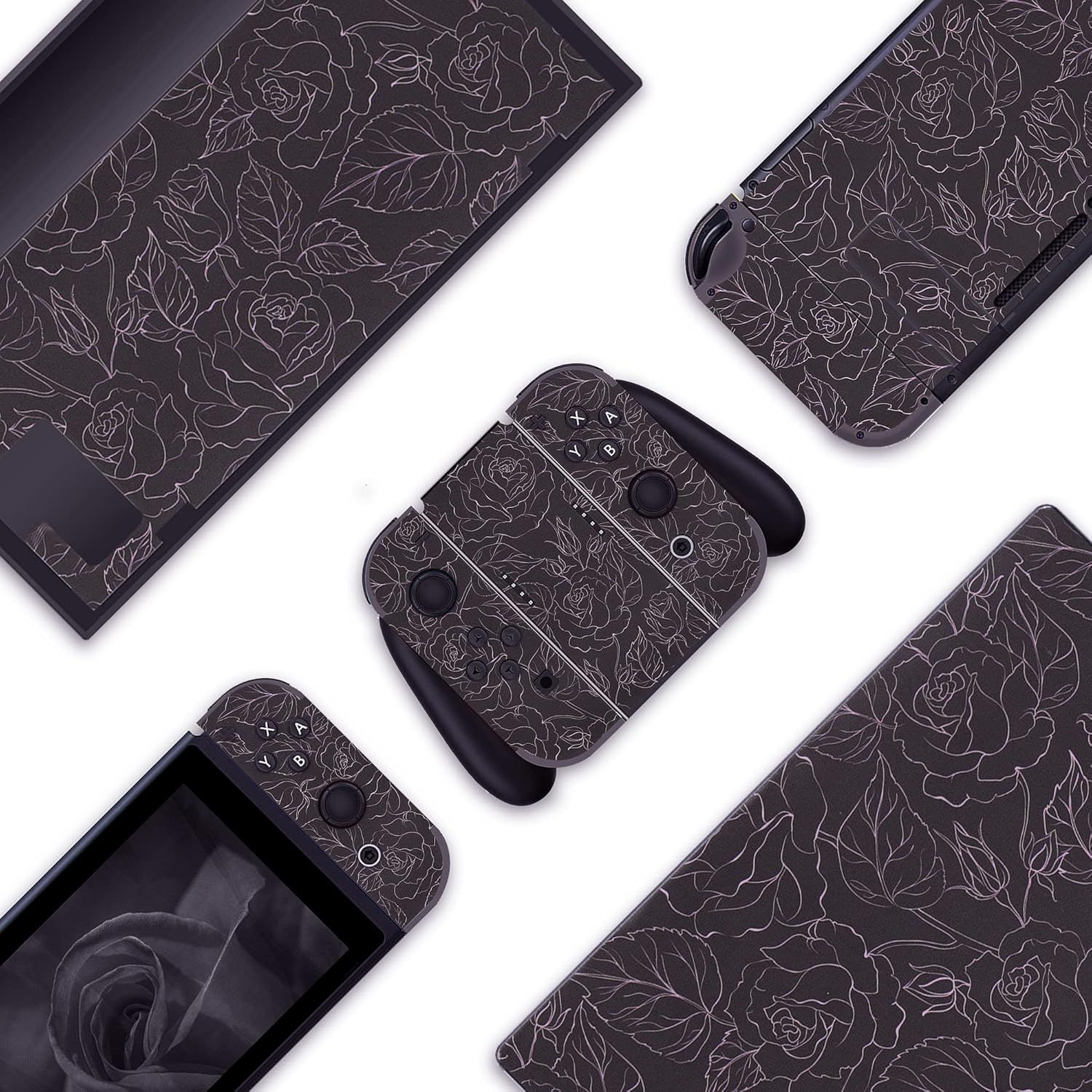Rose Switch Skin|Vinyl Sticker|Cute Valentine's Flower Compatible with Nintendo Switch (Switch OLED,Black)