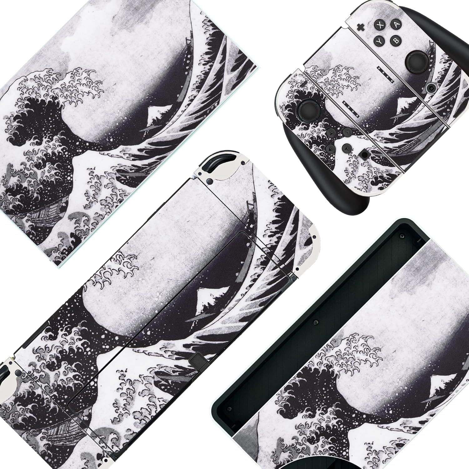 eXtremeRate Autocollant pour Nintendo Switch Manette,Sticker Skin pour Switch Console & Joycon & Dock avec 2 Protection d'Écran-Grande Vague