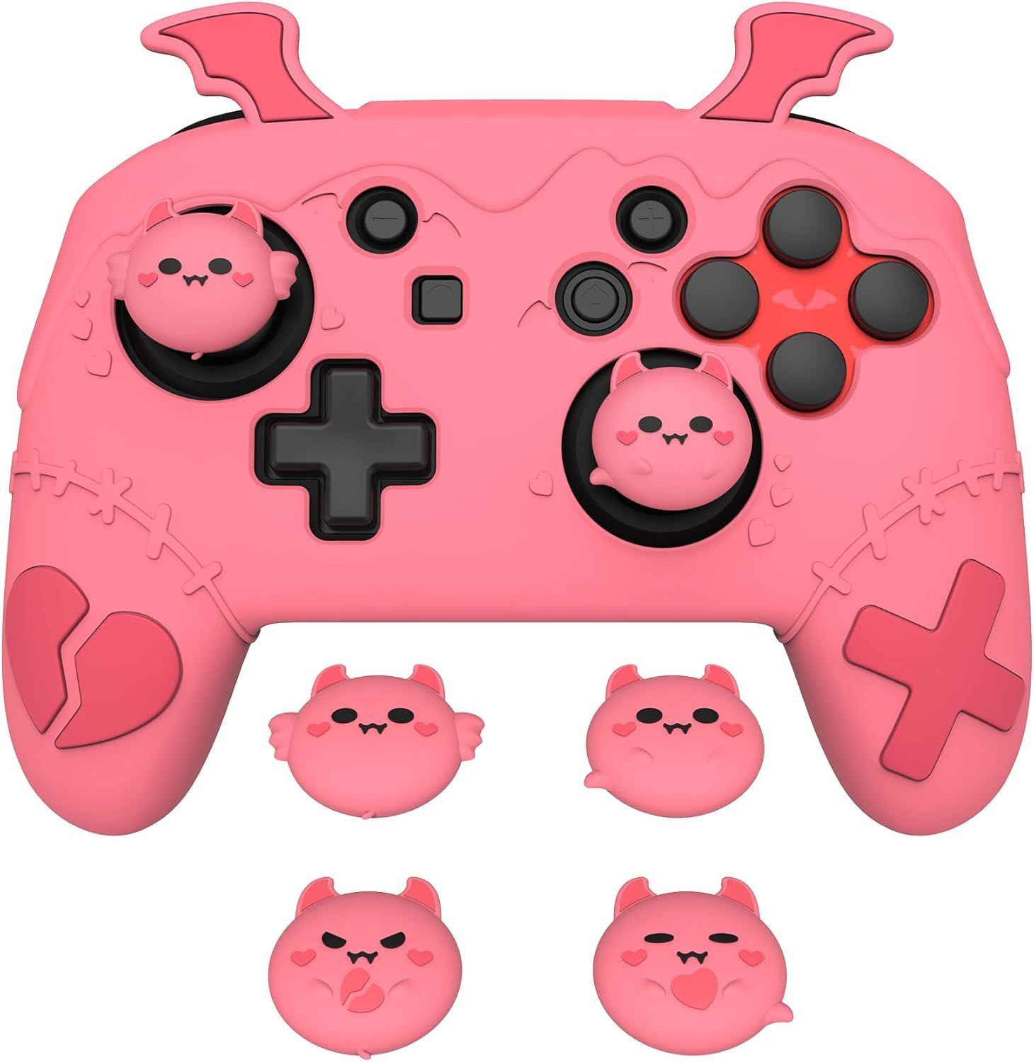 Switch Pro Controller Protective Case with Joystick Protection Cap & Sticker,Silicone Cover Skin for Nintendo Switch Pro Controller-Peach Pink,Gothic Imp Series