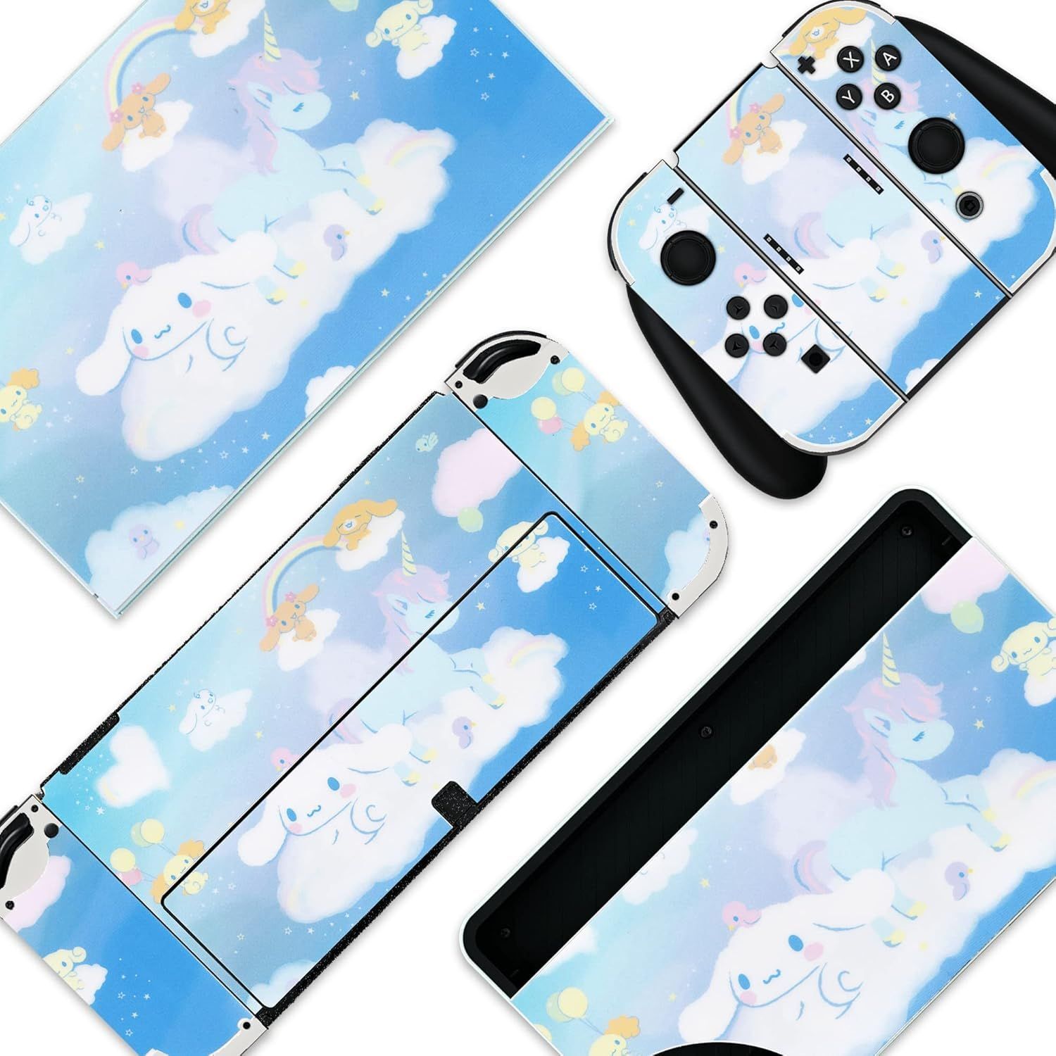 Dog Switch Skin|Cute Pastel Vinyl Sticker|Japanese Kawaii Cinnamon Roll Game l Compatible with Nintendo Switch (Switch OLED,Blue)