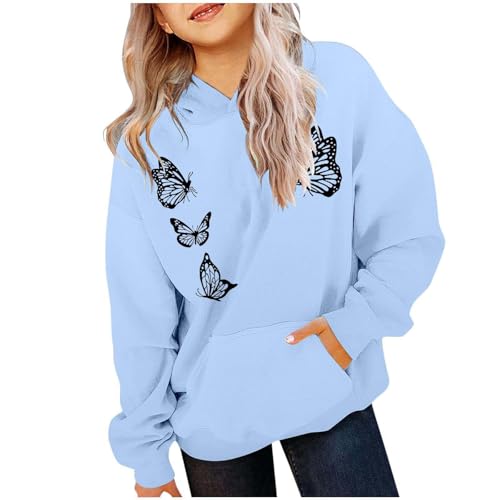Sweatshirt à Capuche élégant pour Filles avec Design imprimé Unique et Poche Frontale pour Une Tenue décontractée et des activités de Plein air (Sky Blue, 13-14 Years)