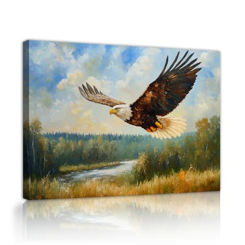 SHENGPOSTER Peinture à l’huile Texture Toile Art mural Eagle River Valley Forest Blue Sky Décorations murales pour ferme Salon Cuisine Décoration intérieure 85x120cm