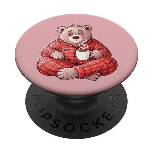 Pyjama café Sleepy Bear Matin Caféine Graphic PopSockets PopGrip Adhésif