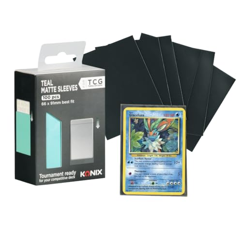 Konix Protège-cartes Teal Matte Sleeves 66 x 91 mm compétition - 100 pochettes - Compatible Magic The Gathering, Pokémon - Plastique - Bleu turquoise