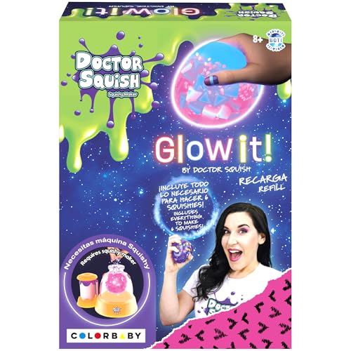 Doctor Squish Lot de 6 squishies TPR, 6 Clips réutilisables, enveloppes Poudre, Slime, confettis et Paillettes, Compatible avec Machine Squishy Maker Doctor Squish, à partir de 8 Ans (48440)