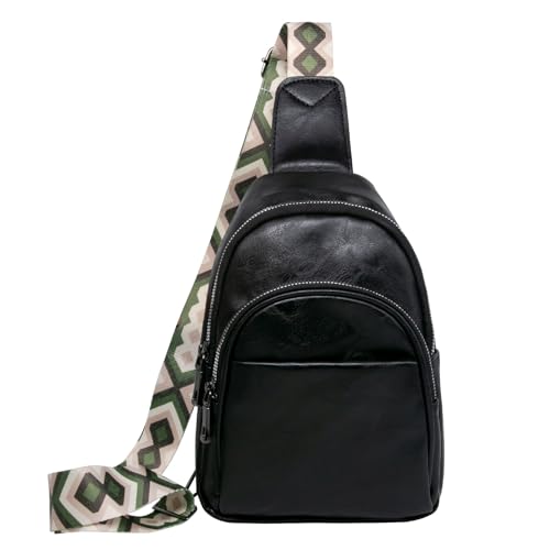FANDARE Rétro Sac de poitrine Cuir Sacoche Sling Bag Homme Femme Sac a Bandouliere Sac d'Epaule pour Voyage Sport Randonnée Vélo Camping Excursion Sac Poitrine, Noir, L, Rétro