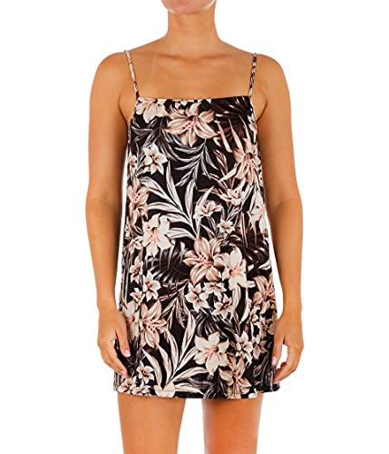 Hurley Flora Slip Mini Dress Robe décontractée, Noir-Floral, L Femme