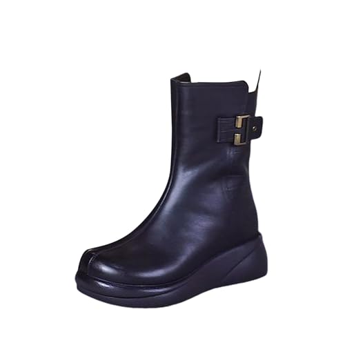 Générique Bottines Cuir Femme Bottines Femme Pieds Larges Casual Chic Plate Souple Imperméable Bottine Pied Large Légère Extérieur Boots Slip On Bottine Blanche