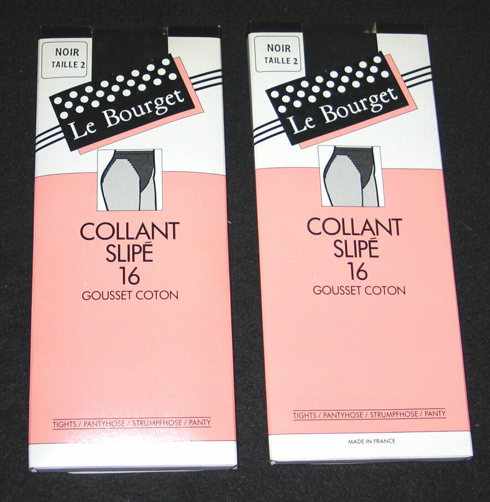 2 COLLANTS SLIP LE BOURGET T 2 NOIR NYLON FIN TYPE TANGA SEXY ELEGANTE LINGERIE