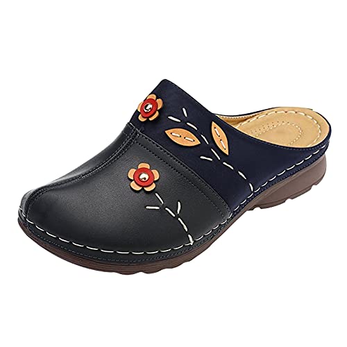 LJHH Chaussons Claquette Femme OrthopéDiques Sabots Fleur Nu-Pieds Cuir Pantoufles Plate-Forme Chaussures Plates Slippers Chaussures De Plage éLéGantes Occasionnel Grande Taille 35EU - 43EU