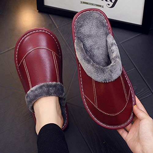Nwarmsouth Femme Homme Accueil Slippers Chaussures,Pantoufles en Cuir antidérapantes, Chaussures Chaudes en Coton à la Maison-Sauce Rouge_35-36,Homme Femmes Souple Confort Pantoufle Hiver