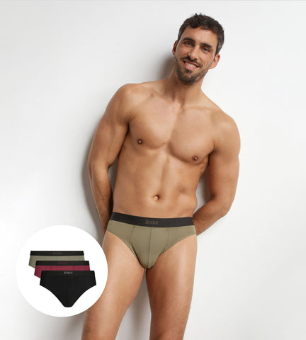DIM Lot de 3 slips homme en coton Noir Kaki Rouge Pur Confort
