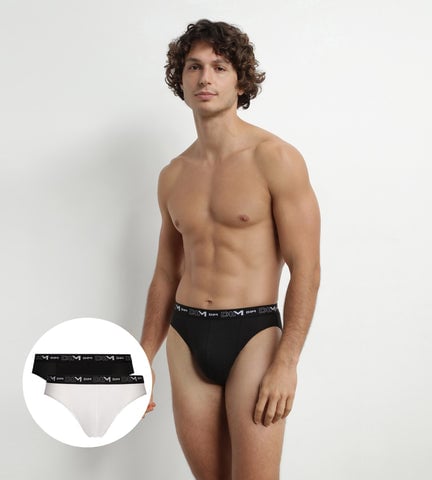 DIM Lot de 2 slips homme Noir Blanc ceinture contrastée Dim Coton Stretch