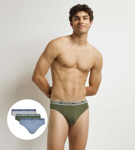 DIM Lot de 3 slips homme Bleu Gris Vert Coton Stretch Bio