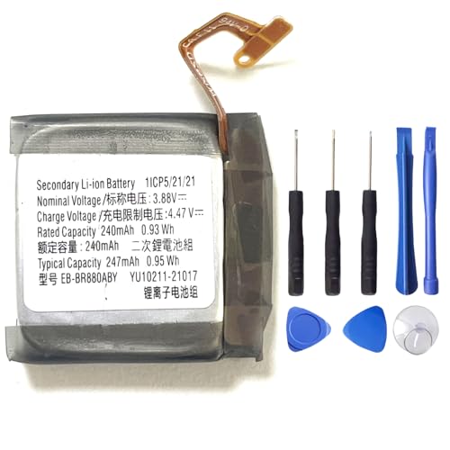 XITAIAN 3,88V 0,95Wh 240mAh EB-BR880ABY Remplacement Laptop Batterie pour Galaxy Gear Watch 4 40 mm SM-R860 SM-R865 & Galaxy Watch 4 Classic 42 mm SM-R880 SM-R885 avec kit d’Outils de réparation