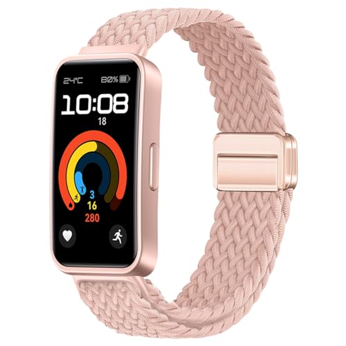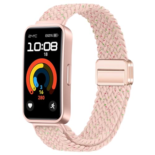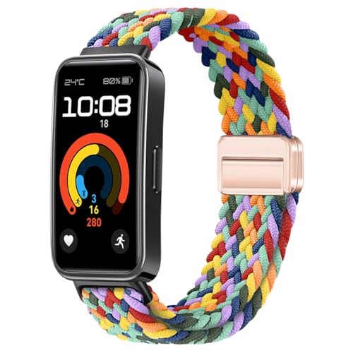 SMYAOSI Magnétiques Tressé Bracelet pour Huawei Band 9/ Huawei Band 8 Smart Watch, Réglable Sport Elastique Nylon Remplacement Bracelets pour Huawei Band 9/ Huawei Band 8 (Arc-En-Ciel+Rose+Vert)