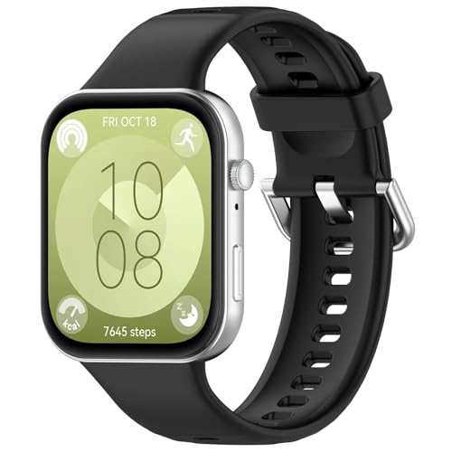 KNOXS Bracelet pour Huawei Watch Fit 3 Smart Watch Band, Remplacement Facile à Nettoyer Sport Réglable Silicone Souple Bande (Noir)